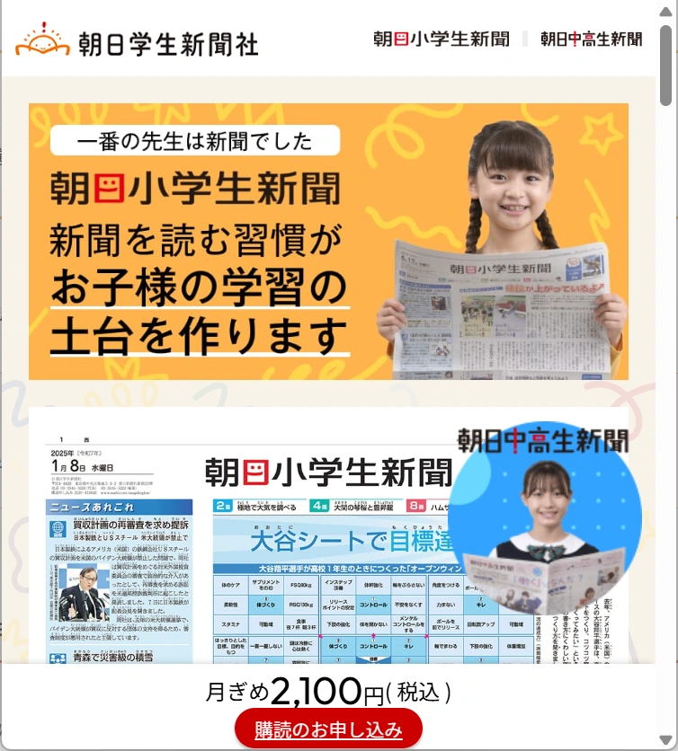 【朝日小学生新聞】公式サイトで紙面とサンプルをチェックできます