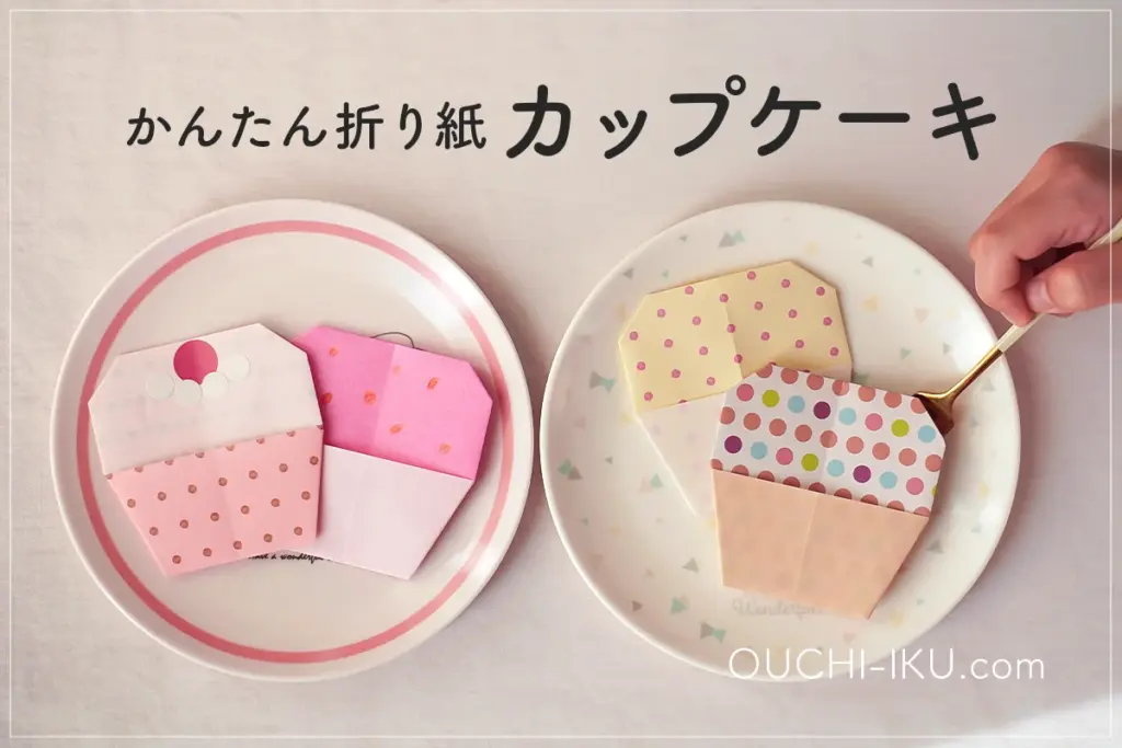 折り紙カップケーキの簡単な折り方!小さい子でもかわいく作れる平面タイプ