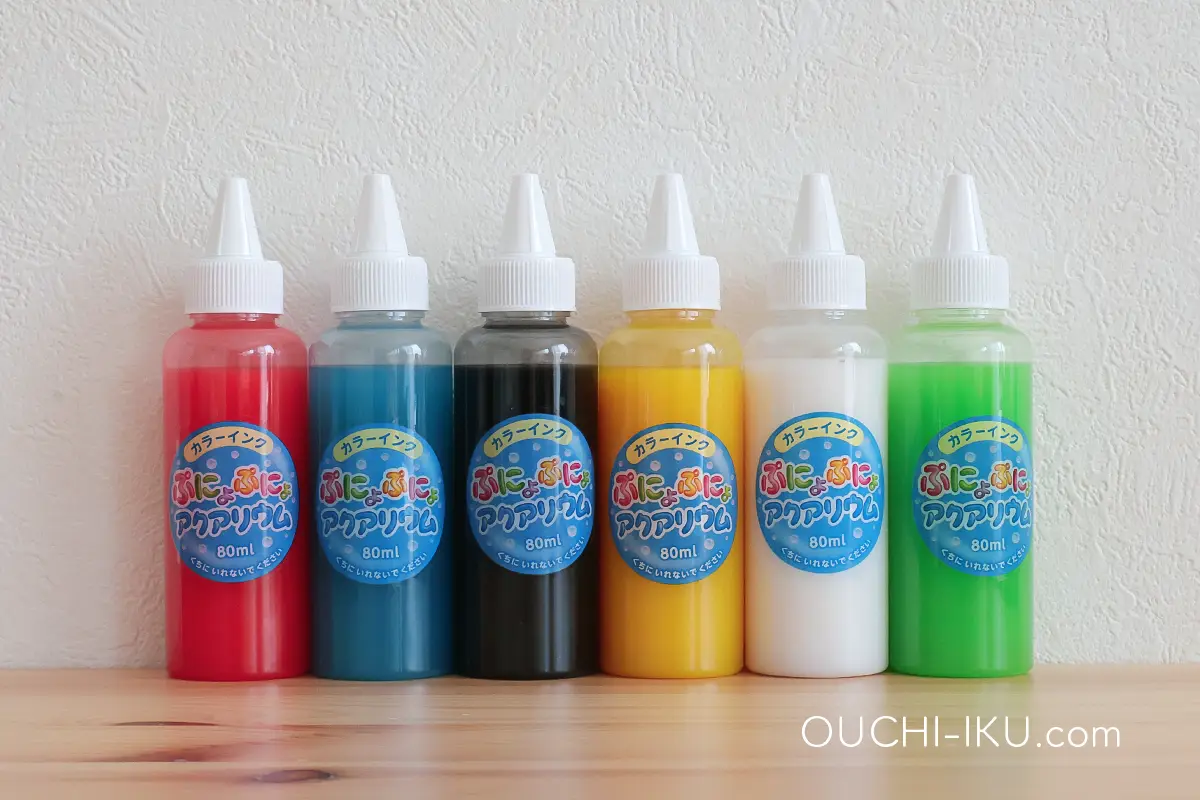 「ぷにょぷにょアクアリウム」は、水溶液とカラーインクを混ぜ合わせることで、ぷにょぷにょとした感触の不思議な生き物を作り出すことができる、人気の科学体験キット。